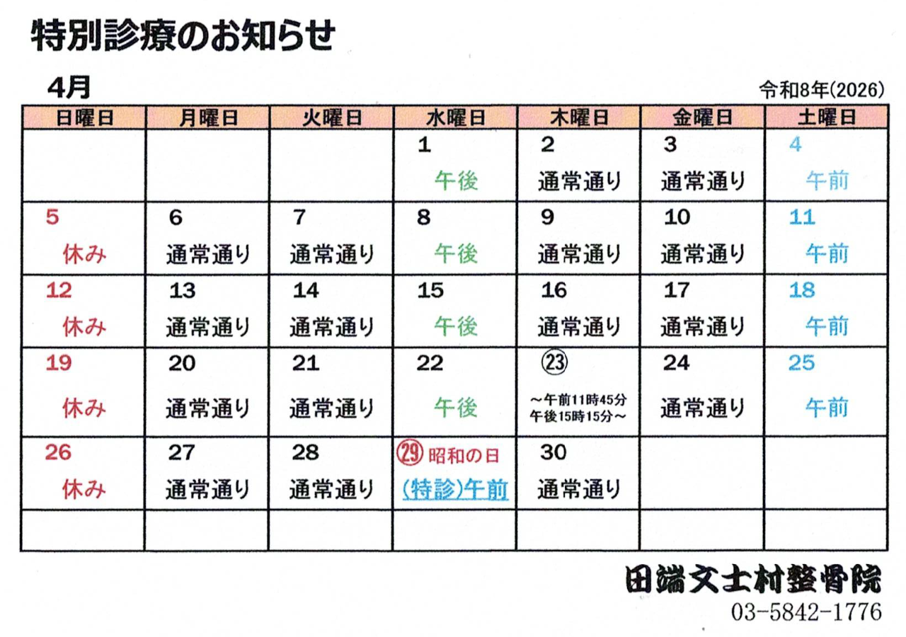 4月の診療予定表(表示はタップorクリックしてください)