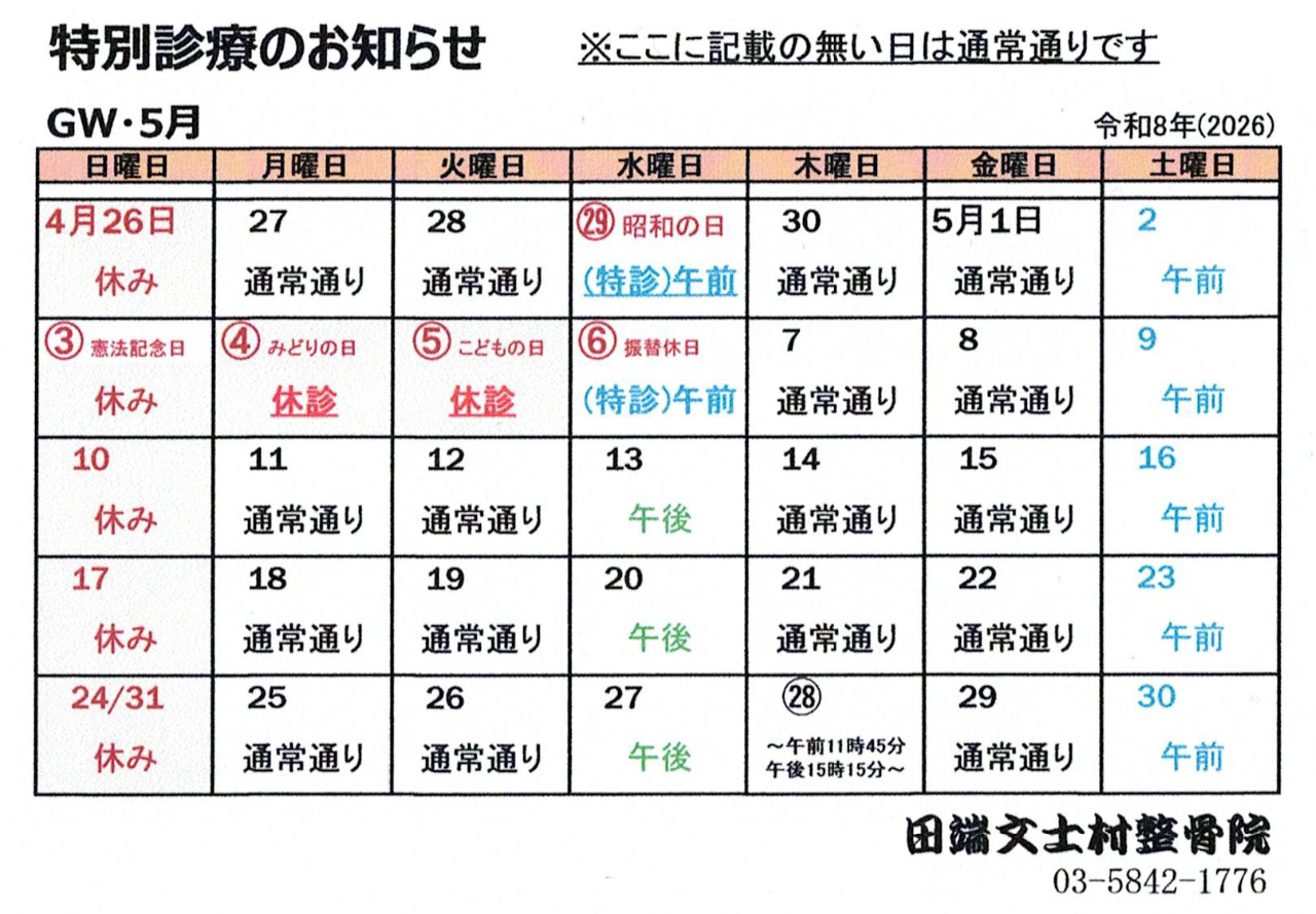 5月の診療予定表(表示はタップorクリックしてください)